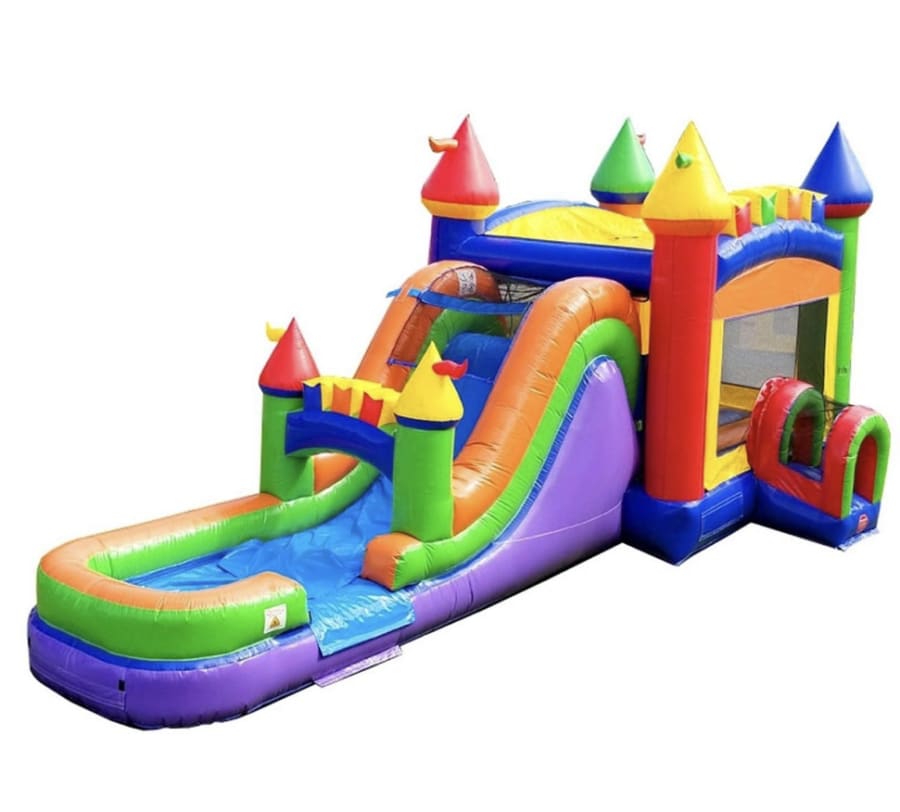 With its vibrant rainbow design and engaging features, this combo unit is sure to bring the fun and create lasting memories for your party. Whether you're hosting a children's birthday party or a gathering for all ages, the Rainbow Water Slide Bounce House Combo is a fantastic choice for an entertaining and enjoyable event.