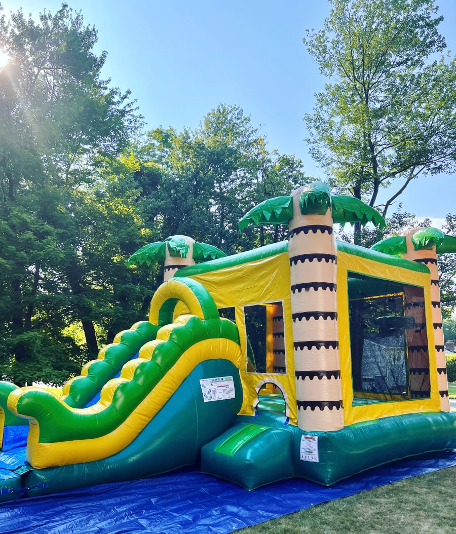 Introducing our Jungle Combo, a thrilling and adventurous Water Slide Bounce House Combo that will take your party to the next level! Designed with a captivating jungle theme, this combo unit provides everything you need for a fun, exciting, and memorable play day for kids and adults alike.