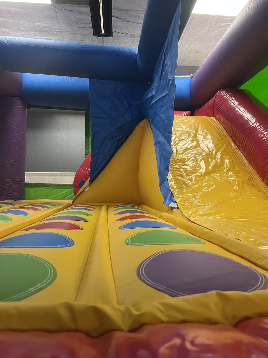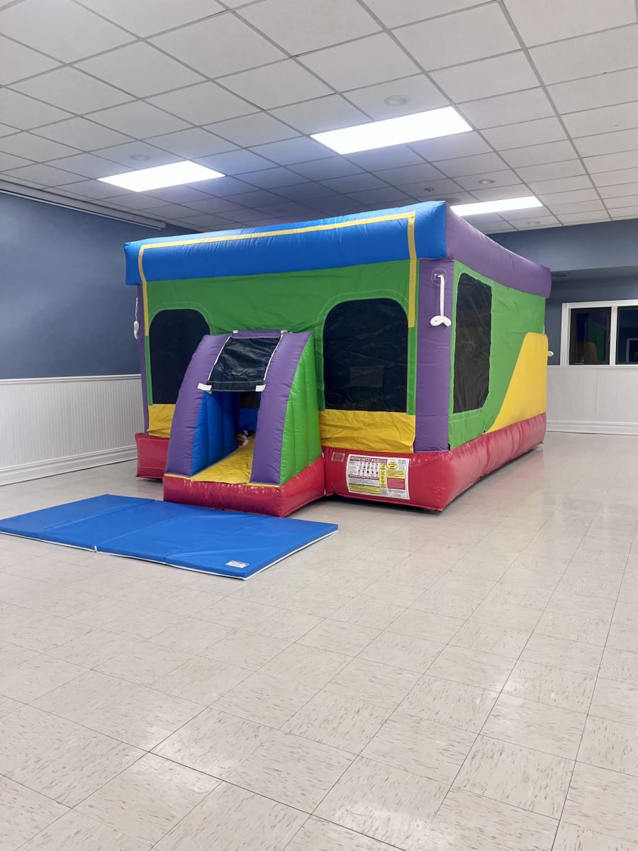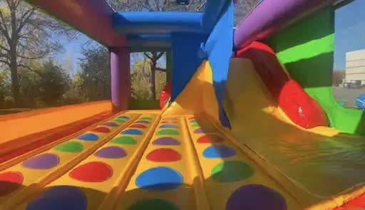 Perfect for indoor parties! Our compact ColorPop Bounce House with Slide is designed specifically for indoor venues with shorter ceilings — standing at just 8 feet tall. This bright and colorful unit brings all the excitement of a bounce house plus a fun slide, without needing the space of a large outdoor inflatable.