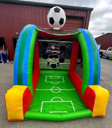 Get ready to score big with our inflatable soccer game! Ideal for soccer enthusiasts of all ages, this inflatable brings the excitement of the field straight to your event. Challenge your friends to a thrilling match, showcase your dribbling and shooting skills, and experience the thrill of victory as you score goal after goal. With its vibrant design and simple setup, our inflatable soccer game guarantees endless fun and excitement for players and spectators alike! ⚽️