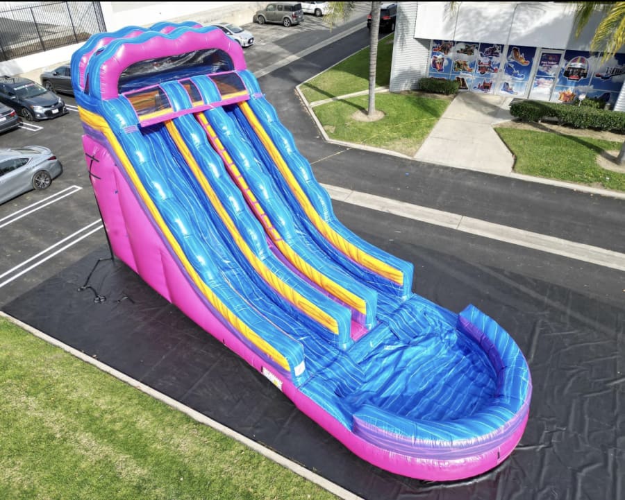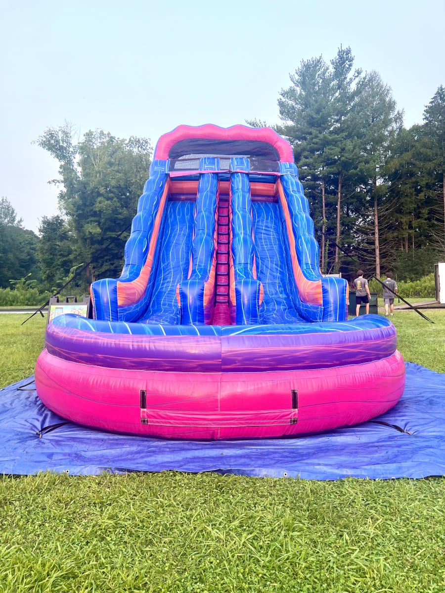 Get ready to experience exhilarating fun like never before. Featuring two spacious lanes and a center climb, this vibrant water slide is perfect for cooling off and making a splash at your next event. Whether it's a birthday party, corporate gathering, or community festival, this inflatable attraction guarantees endless laughter and excitement for all ages. Don't miss out on the adventure—book the 20' Starburst Slide today and turn your event into an unforgettable splash zone!