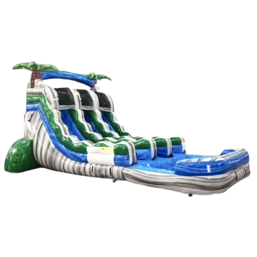 Take your party to the next level with our thrilling Paradise Plunge - 15' Dual Lane Center Climb Water Slide! Perfect for any event, this exciting slide features two racing lanes for non-stop fun and friendly competition. Guests can race to the top, then zoom down the slide for a refreshing splash. The unique center climb design makes it easy for everyone to get to the top quickly, ensuring no one has to wait long for their turn. With vibrant colors and a fun, family-friendly design, this water slide is guaranteed to be the highlight of your party. Whether you're hosting a birthday, family reunion, or corporate event, the Paradise Plunge brings the ultimate fun and excitement to your gathering. Rent it today and let the sliding and splashing begin!